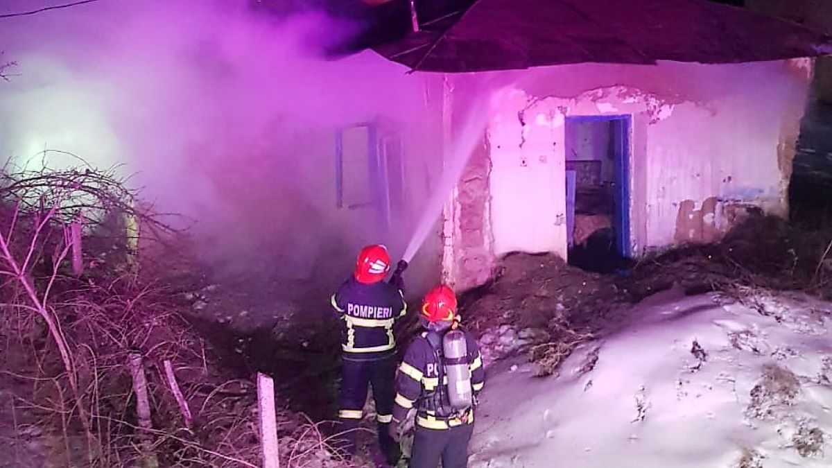 Un bătrân de 87 de ani, din Hamcearca, și-a găsit sfârșitul în casa cuprinsă de flăcări. FOTO: ISU Tulcea