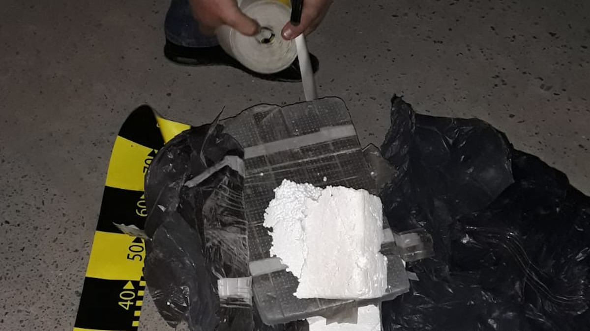În pachetul suspect au fost găsite bucăți de polistiren. FOTO IPJ Tulcea