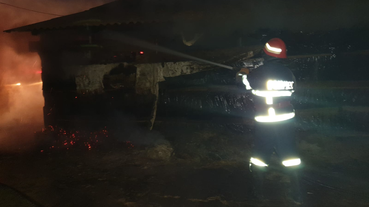 Pompierii au reușit să lichideze incendiul izbucnit la grajd. FOTO ISU Delta Tulcea
