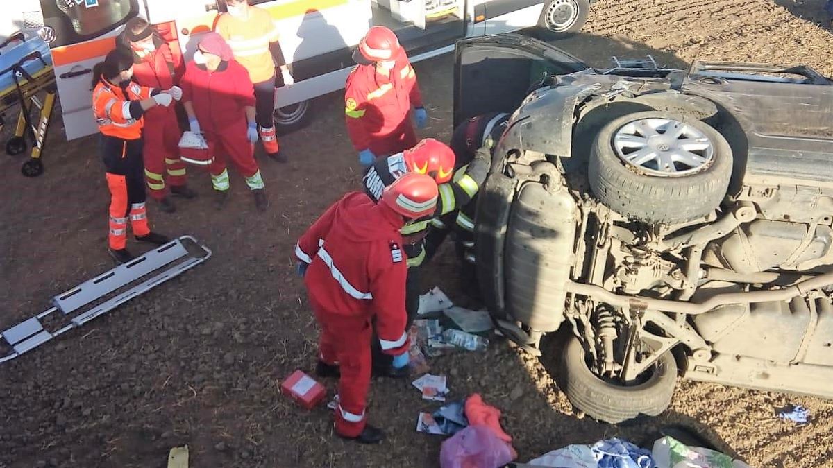 Un mort și doi răniți, într-un accident rutier petrecut în afara localității Topolog. FOTO ISU Tulcea