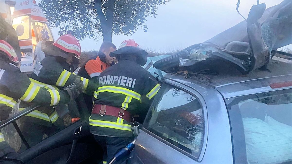 Un mort și un rănit grav, într-un accident rutier petrecut pe DN 22, în Mihail Kogălniceanu. FOTO: ISU Tulcea