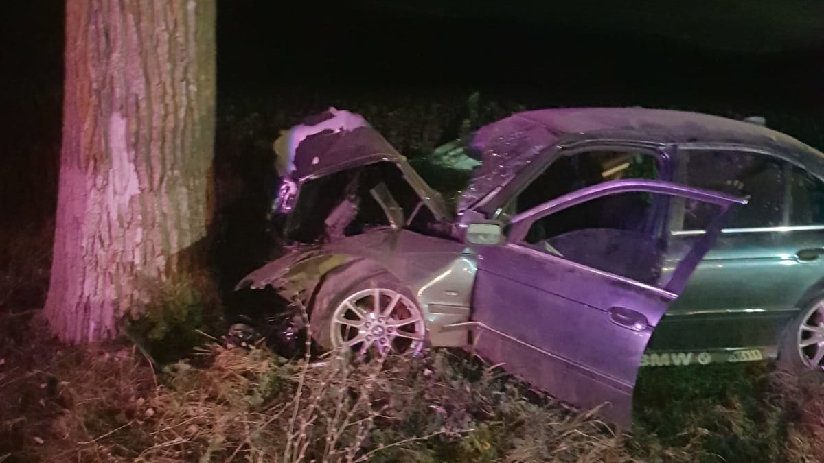 Autoturismul BMW s-a oprit într-un pom. FOTO IPJ Tulcea
