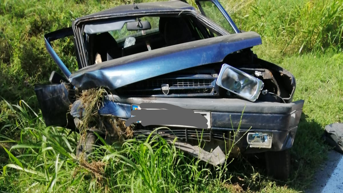Șoferul și pasagera au fost transportați la spital. FOTO IPJ Tulcea