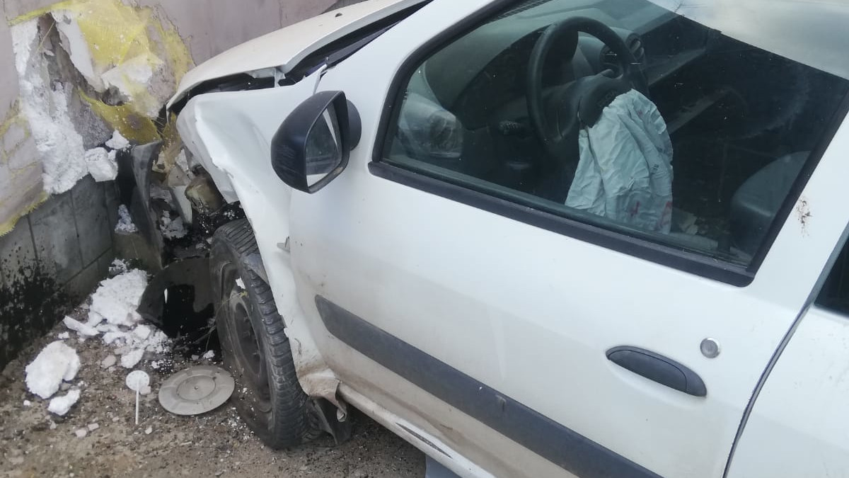 Mașina scăpată de sub control s-a oprit în peretele casei. FOTO IPJ Tulcea
