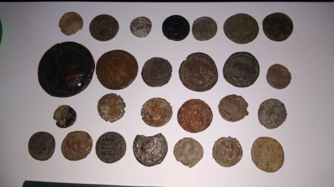 În urma perchezițiilor, polițiștii au găsit mai multe monede romane. FOTO IPJ Tulcea