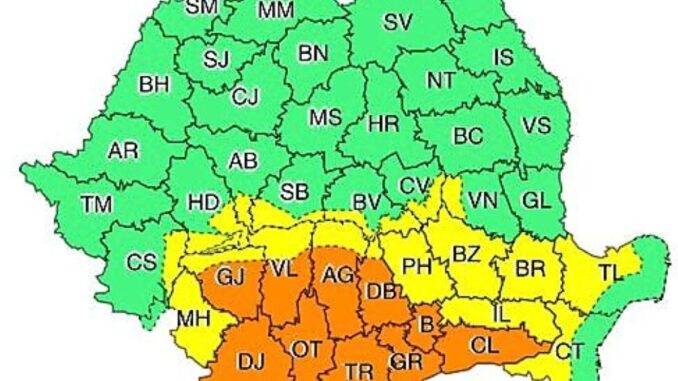 Administrația Națională de Meteorologie a emis o avertizare meteorologică de vreme rea, un cod galben valabil din data de 14 octombrie, ora 13.00, și până pe 16 octombrie, până la ora 14.00.