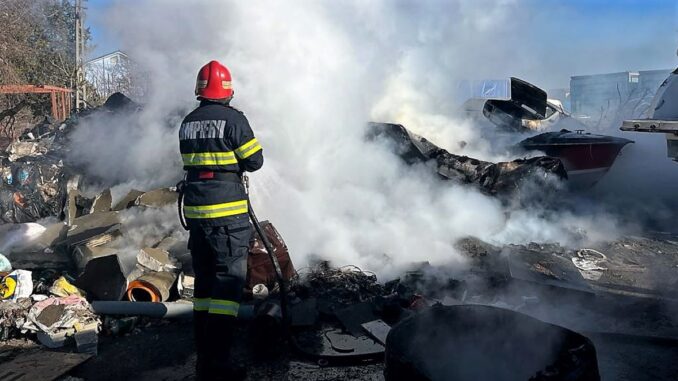 Ambarcațiuni distruse într-un incendiu pe strada Energiei din municipiul Tulcea. FOTO ISU Tulcea