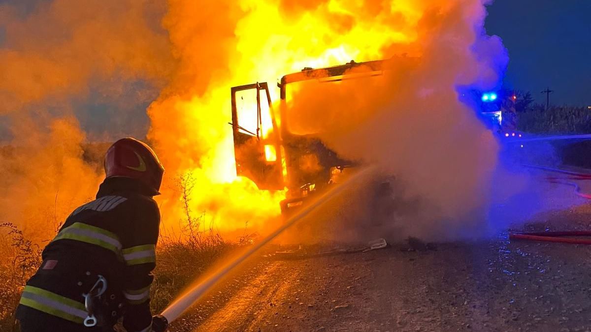 Incendiu produs la un camion. FOTO ISU Tulcea