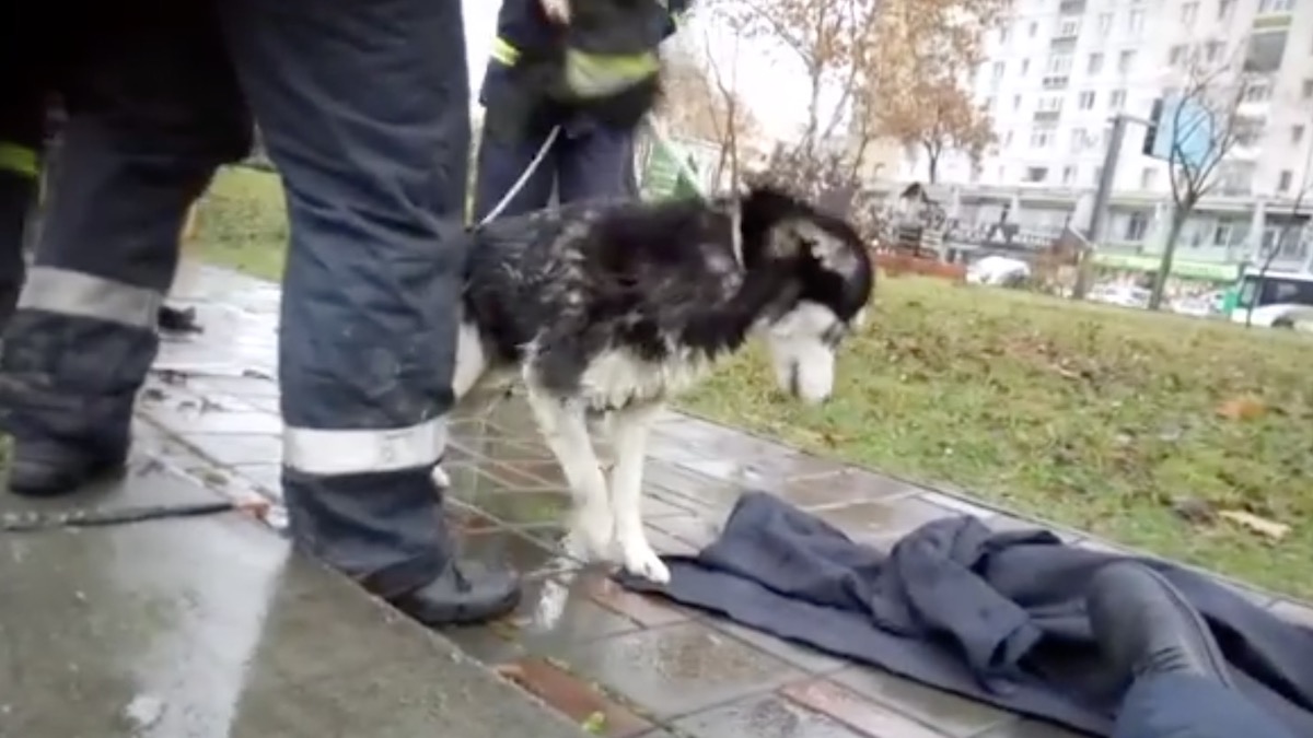 Cățel salvat de pompierii tulceni. FOTO Captură video