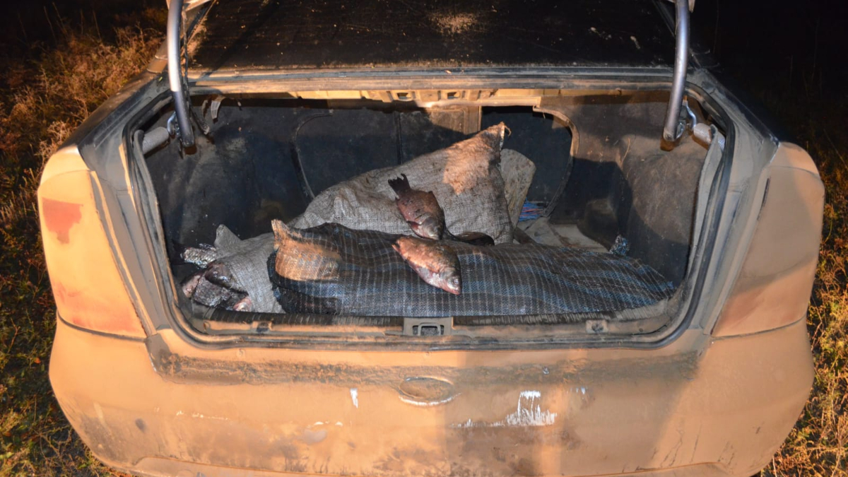 Mașina cu care era transportat peștele a fost abandonată pe câmp. FOTO Poliția de Frontieră