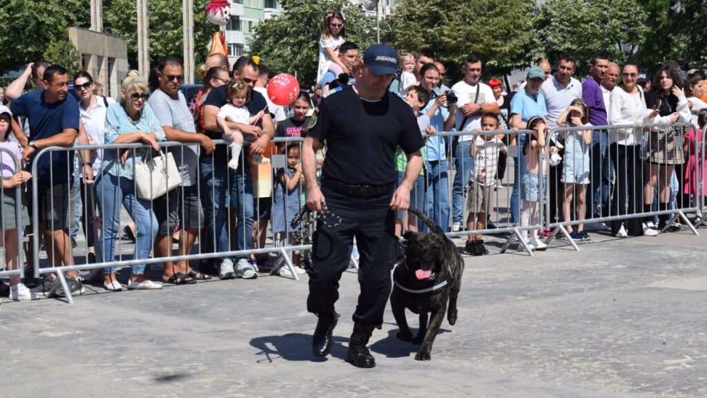 De multă drăgălășenie din partea copiilor au avut parte și câinii de intervenție ai jandarmilor și cei ai polițiștilor. Însă când a venit momentul să intre în rol și să facă demonstrația abilităților speciale dobândite prin dresaj, câinii au impresionat publicul de la mic la mare.
